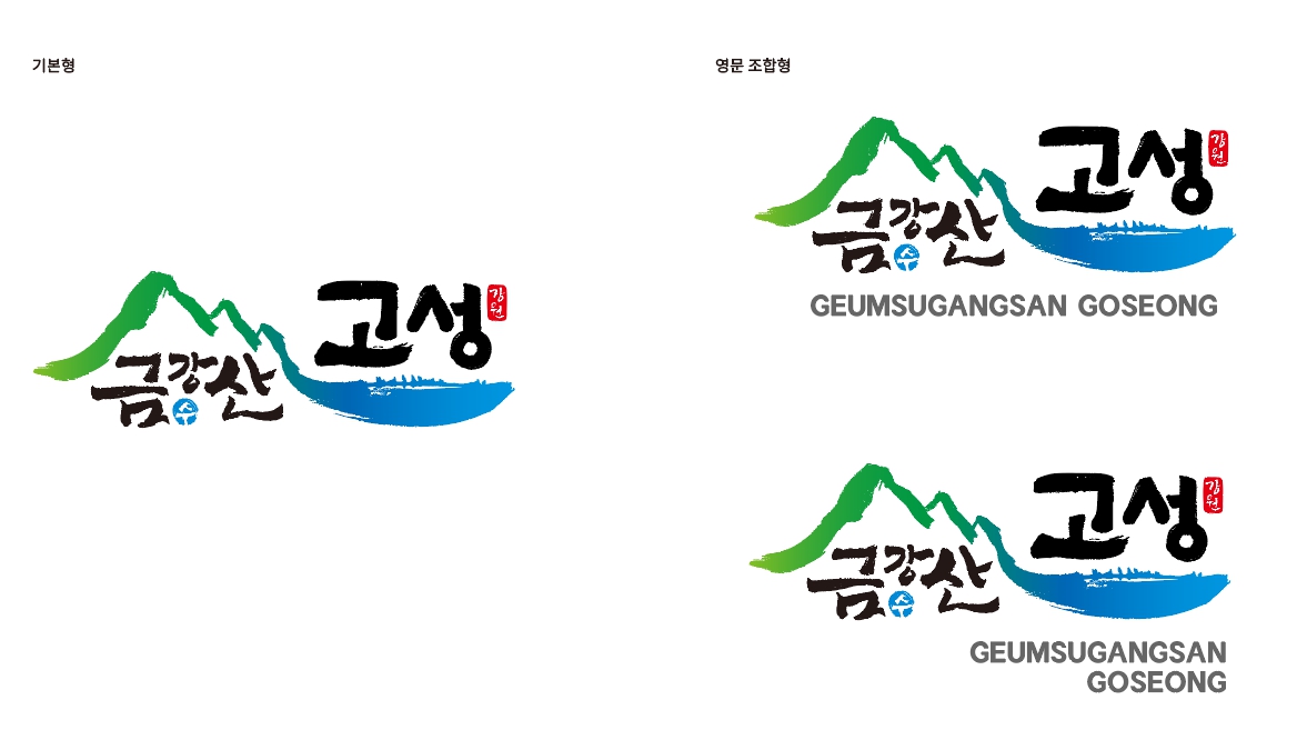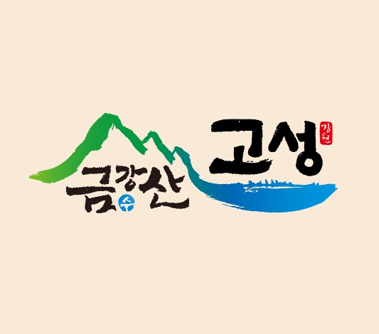 금강산과 해금강을 품은 고성을 캘리그라피로 디자인하여 대표하는 금수강산임을 강조하는 디자인이라고 합니다. 해금강과 해양심층수를 나타내는 파란색계열 색상과 금강산을 나타내는 녹색 계열의 색상을 사용하여 금수강산 고성의 청정자연을 표현했다고 해요.