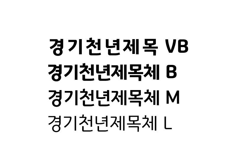 - 경기천년체는 영상, 인쇄, 웹, 로고, 간판 등 다양한 매체에 자유롭게 사용이 가능하며, 프로그램에 탑재하여 배포하는 것도 가능합니다.