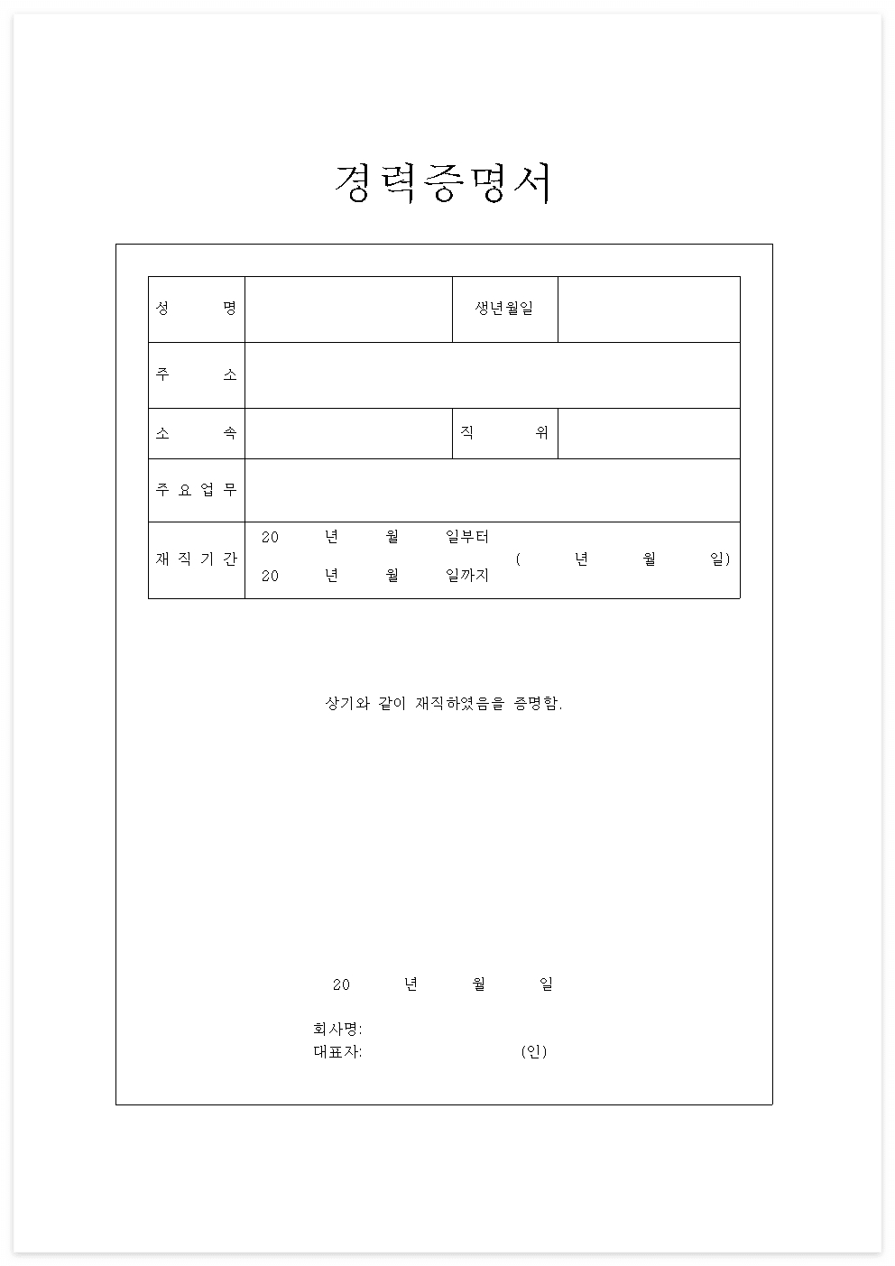 경력증명서 양식(HWP, PDF) 무료 다운로드