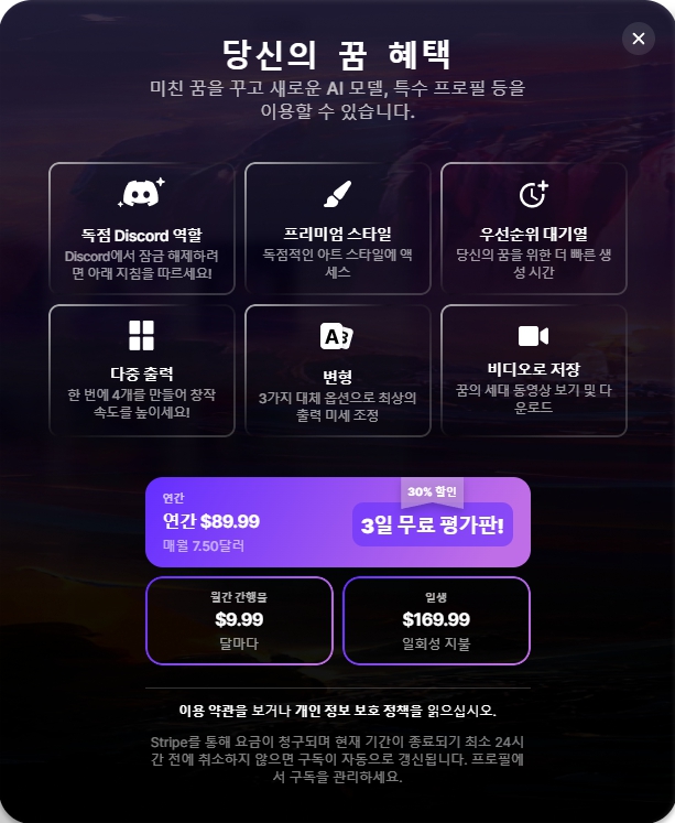 - 유료(프리미엄)로 사용하게 되면 한 번에 4개의 이미지를 동시에 생성하여 생산성에 좋음