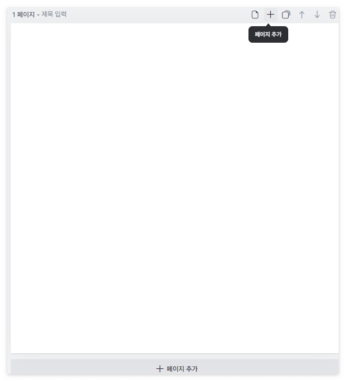 4. 우측에는 페이지의 제목을 입력할 수 있고, 추가/복사/순서 바꾸기/버리기 등을 선택할 수 있는 버튼이 있습니다.