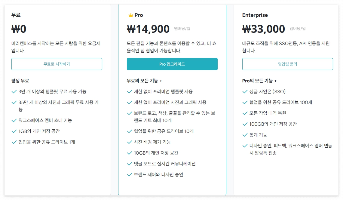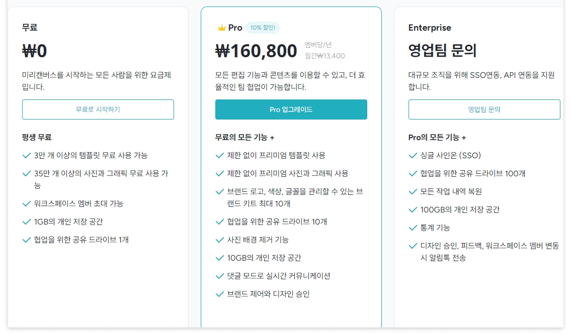 미리캔버스 사용 요금