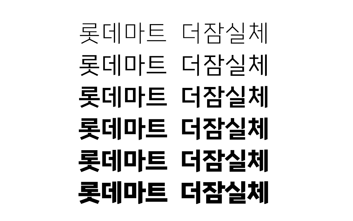 Thin, Light, Regular, Medium, Bold, Extra Bold으로 구성된 폰트는 다양한 활용도를 기대할 수 있습니다.