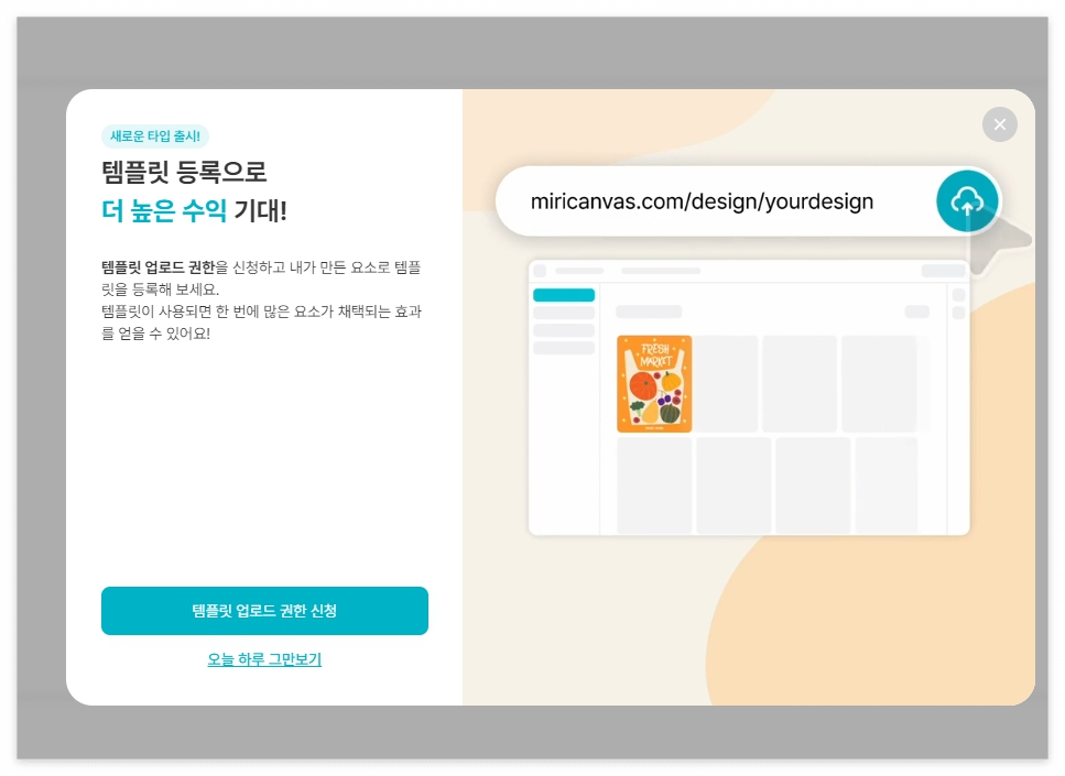 미리캔버스 기여자가 되어 콘텐츠 수익을 창출하세요. 미리캔버스만큼 쉬운 디자인허브 콘텐츠 업로드. 지금 바로 시작하세요.