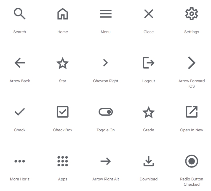 구글아이콘 다운로드를 위해서는 홈페이지에 먼저 접속합니다. 별로의 로그인이 필요없고 바로 사용할 수 있도록 되어 있어요. 화면 왼쪽탭에서 'Icons'를 선택합니다.