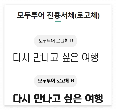 - 모두투어 서체는 배포되는 형태 그대로 사용해야 하며, 변형할 수 없습니다.
