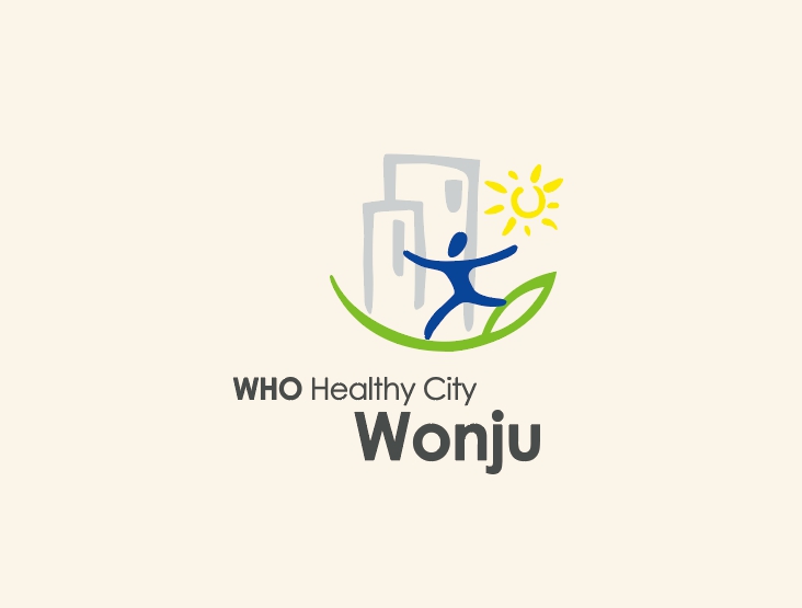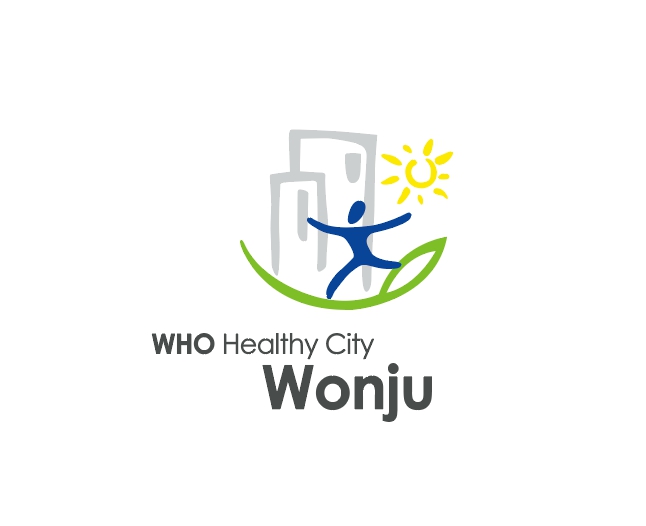 건강도시 마크는 WHO가 인증한 세계 건강도시 마크의 컨셉을 연계하여 개발되었다고 합니다. 모든 구성원들이 활기차고, 화합되는 도시를 의미하여 초록색상의 대지 위에 도시를 상징하는 건축물과 역동적인 사람을 구성하여 도시로서의 원주를 표현하고 있습니다. 따뜻한 햇살이 비추는 모습은 도시의 모든 건강을 상징하는 듯한 표현이 되기도 한다고 합니다.