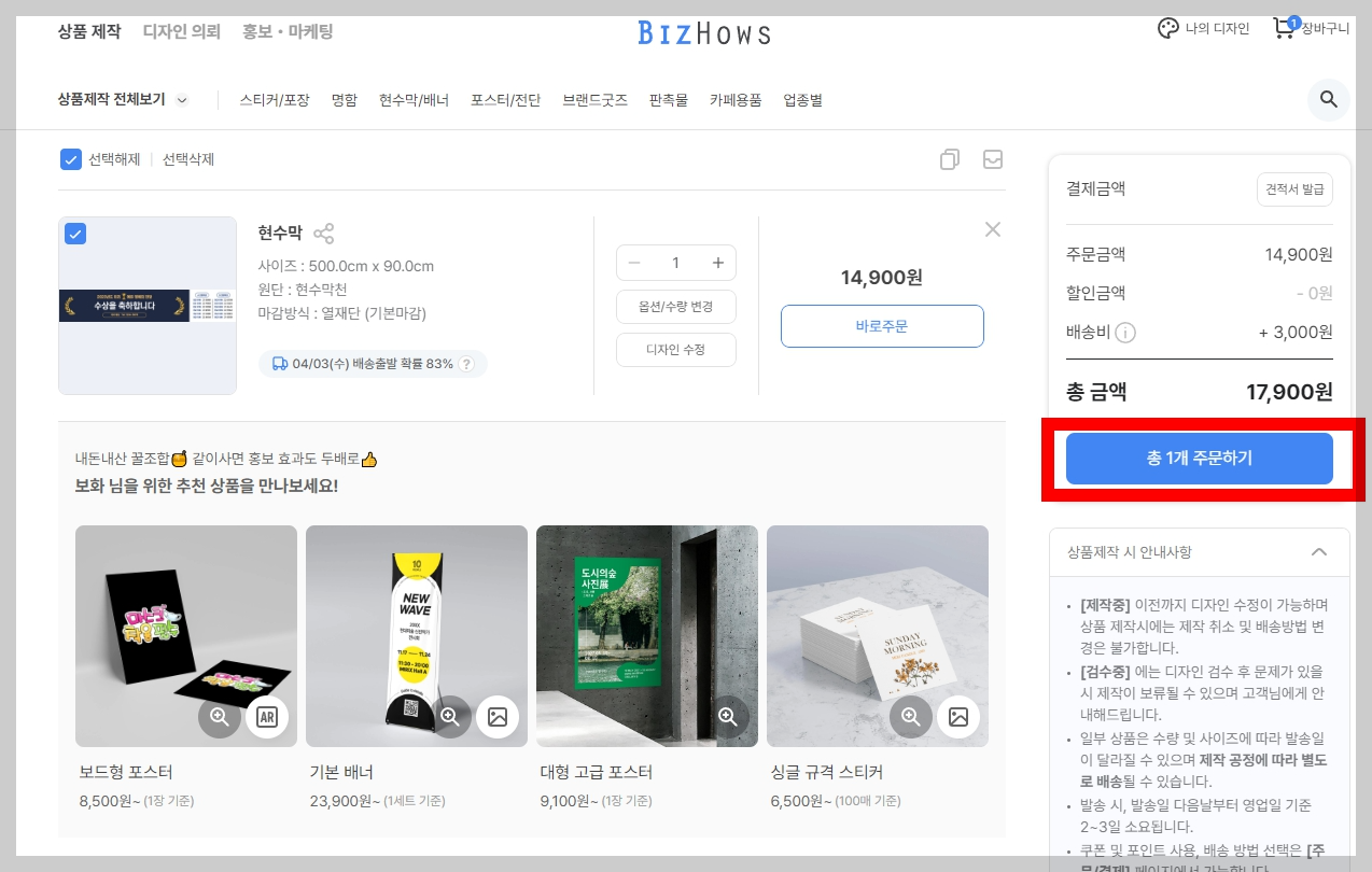 전문 인쇄업체로 성*, 애*랜* 등이 있을 수 있는데, 디자인된 제작물을 맡겨야 해서 기본적인 디자인 지식이 없다면 일반인이 시도해 보기는 쉽지 않을 것 같아요. 그런 반면, (주)미리디에서 제공하는 '비즈하우스'서비스는 디자인시안까지 무료로 제공받아 문구 수정 후 바로 인쇄할 수 있기 때문에 일반인도 쉽게 접근하여 인쇄물을 제작할 수 있습니다. (고퀄리티의 제작물을 원한다면, 디자인 의뢰로 진행해도 되고요)