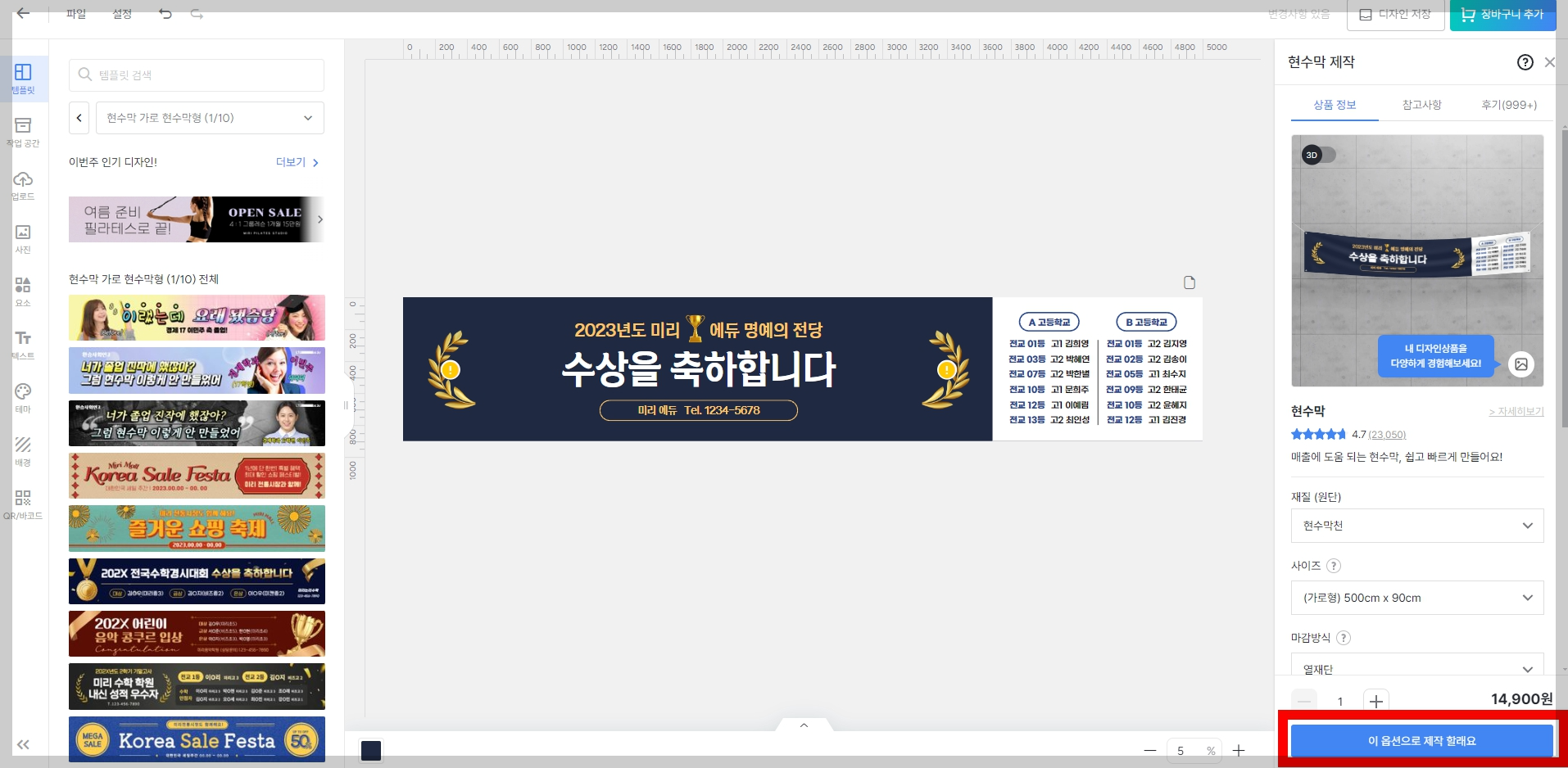 - 문구 변경 후 화면의 우측하단 '이 옵션으로 제작할게요'를 선택합니다.