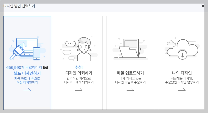 - '셀프디자인하기'를 선택하면 문구만 변경하여 인쇄할 수 있습니다.