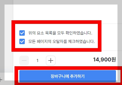 - 다음은 2가지 체크박스를 선택한 후 '장바구니에 추가'를 선택합니다.