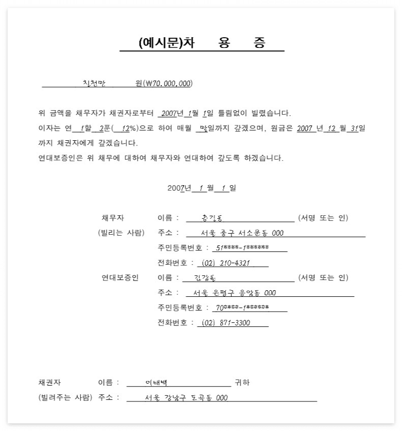 차용증 쓰는 방법