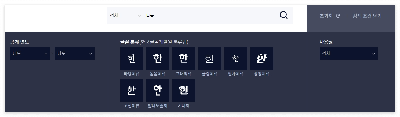 한글꼴큰사전 홈페이지
