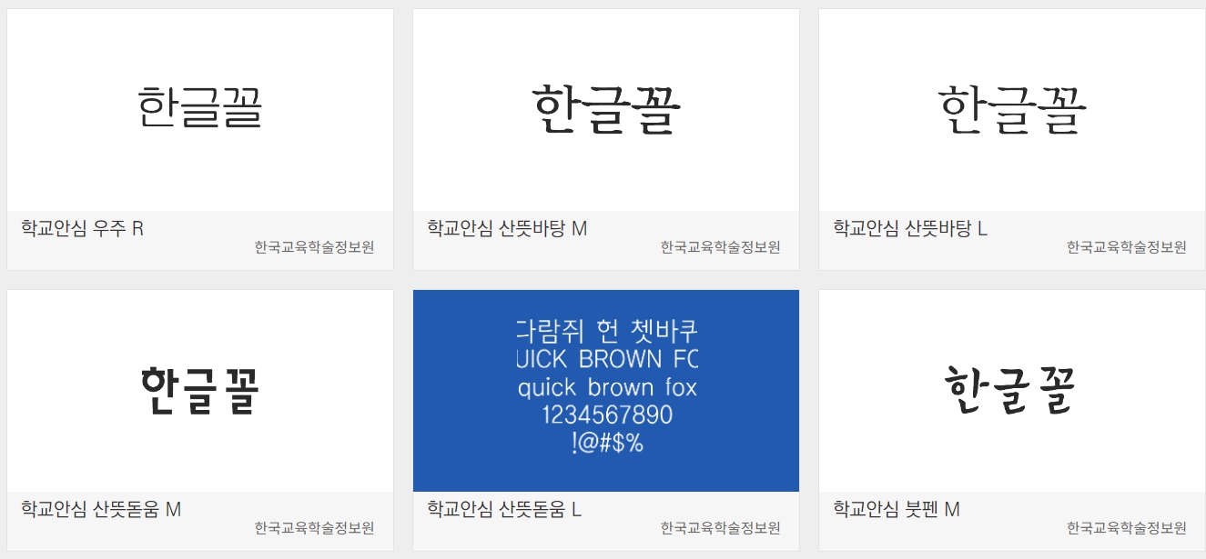 글꼴 저작권을 신경 쓰지 않고 자유롭게 이요할 수 있는 안심글꼴의 170종을 다운로드할 수 있고, 원하는 문구를 입력하여 화면을 통해서 즉시 볼 수 있는 미리 써보는 기능도 할 수 있습니다.