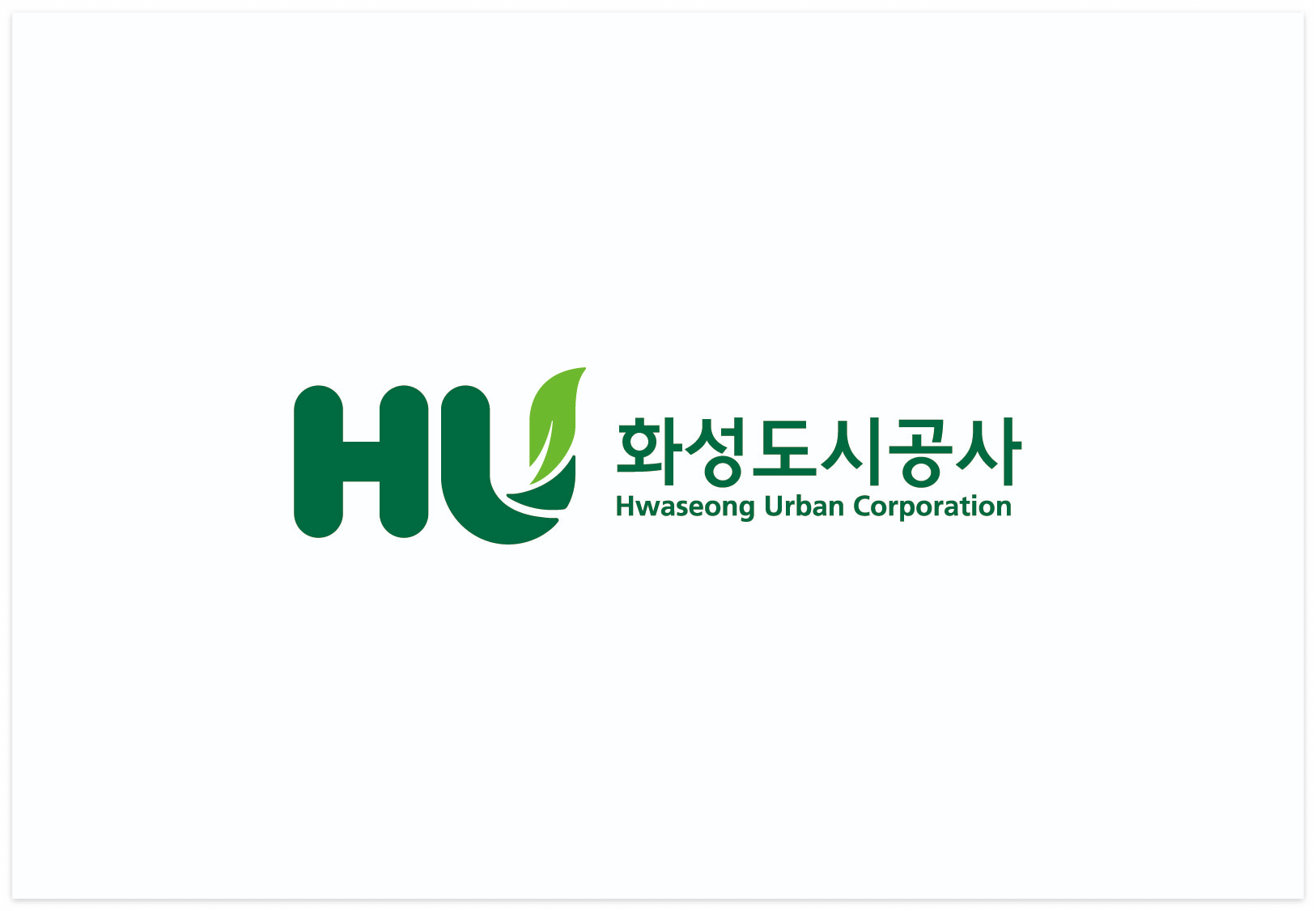 화성도시공사의 로고는 화성의 도시가치를 영문약칭으로 표현합니다. 자연친화적인 모습을 상징하여 나뭇잎의 형상을 결합합니다. 자연과 함께 성장하는 스마트 도시인 화성의 밝은 미래를 세운 나뭇잎으로 나타내고 녹색으로 친화적인 느낌을 담았습니다. 부드럽고 둥근 서체의 'HU'는 친근하게 다가가는 화성도시공사의 가치를 상징하며 시민에게 행복한 삶을 제공한다는 의미를 담고 있습니다.