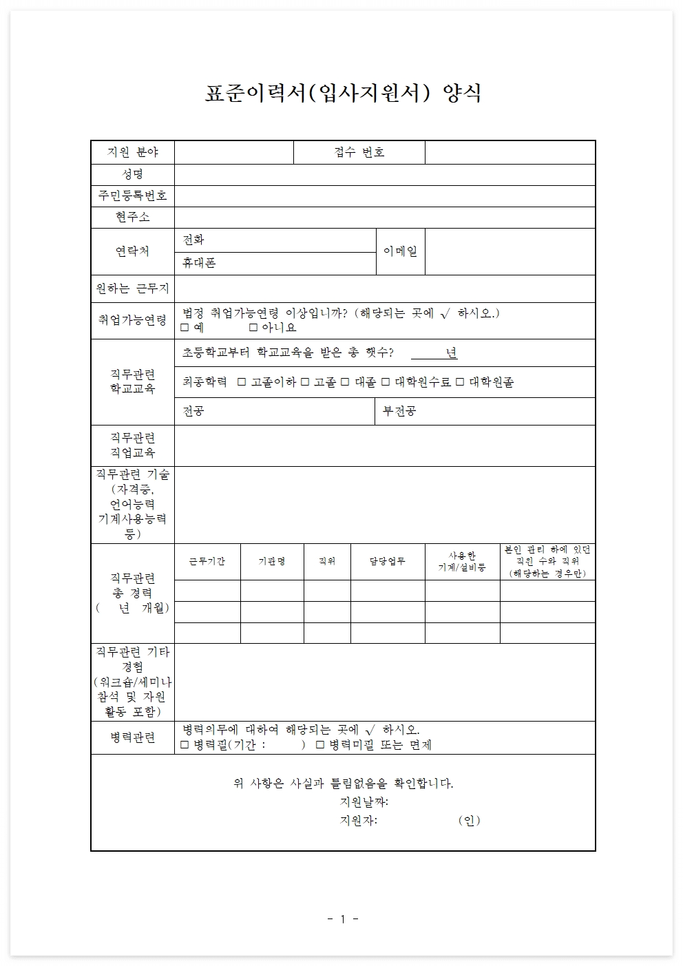 - 병역필 및 병력 기간은 기재 가능