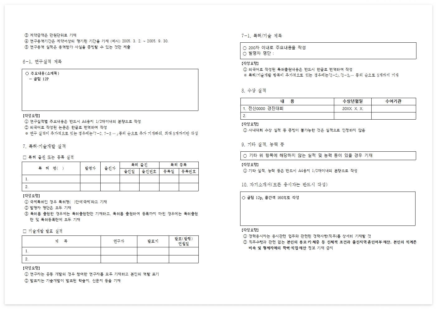 표준이력서 작성 필수 항목